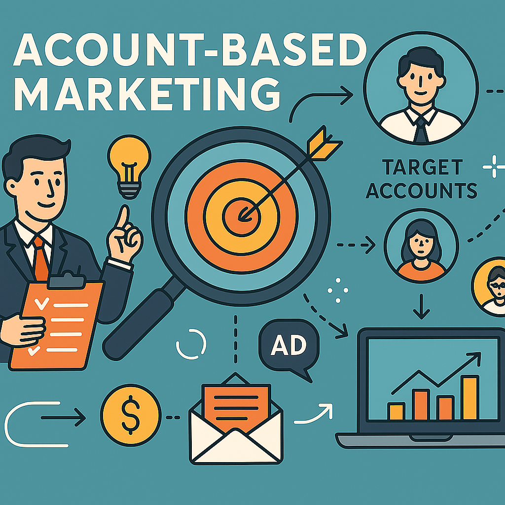 El Account Based Marketing es una estrategia B2B en la que seleccionas un grupo de cuentas clave (empresas específicas), y desarrollar campañas hiper personalizadas para impactar a los decisores dentro de cada una.